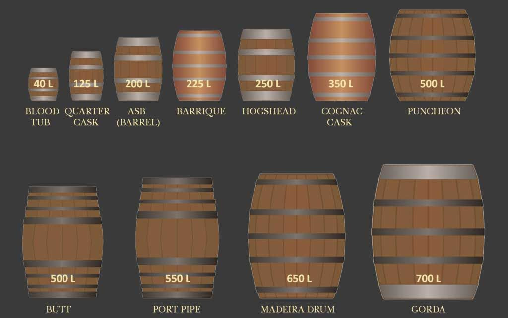 Gorda: 原材料是美国橡木,容量达700升,用来陈年威士忌或雪莉酒。